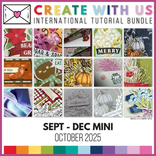 When you place an order of $100 or more each month, you’ll receive the Create with Us tutorial bundle valued at $25. This month’s tutorial bundle includes 15 tutorials from the September-December Mini Catalogue.